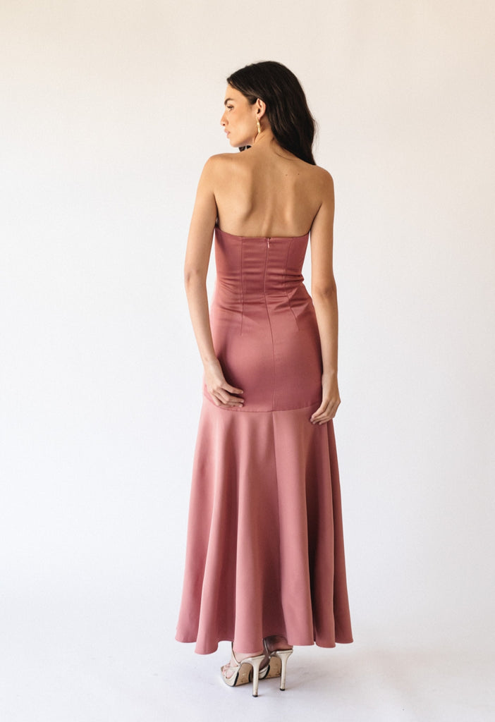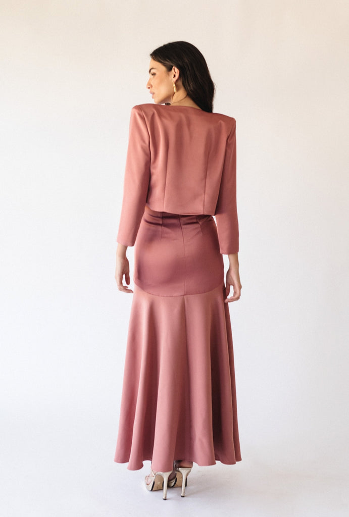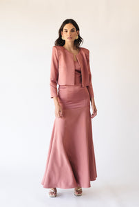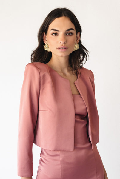 Vestido palabra de honor, con una chaqueta tipo torera.