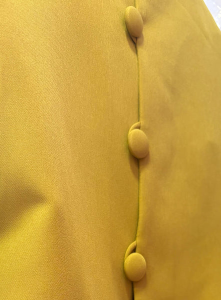 Conjunto para evento de cuerpo y falda. El cuerpo tiene una flor grande de modelaje en el lateral y abotonadura en el centro de la espalda con presillas y botones grandes.