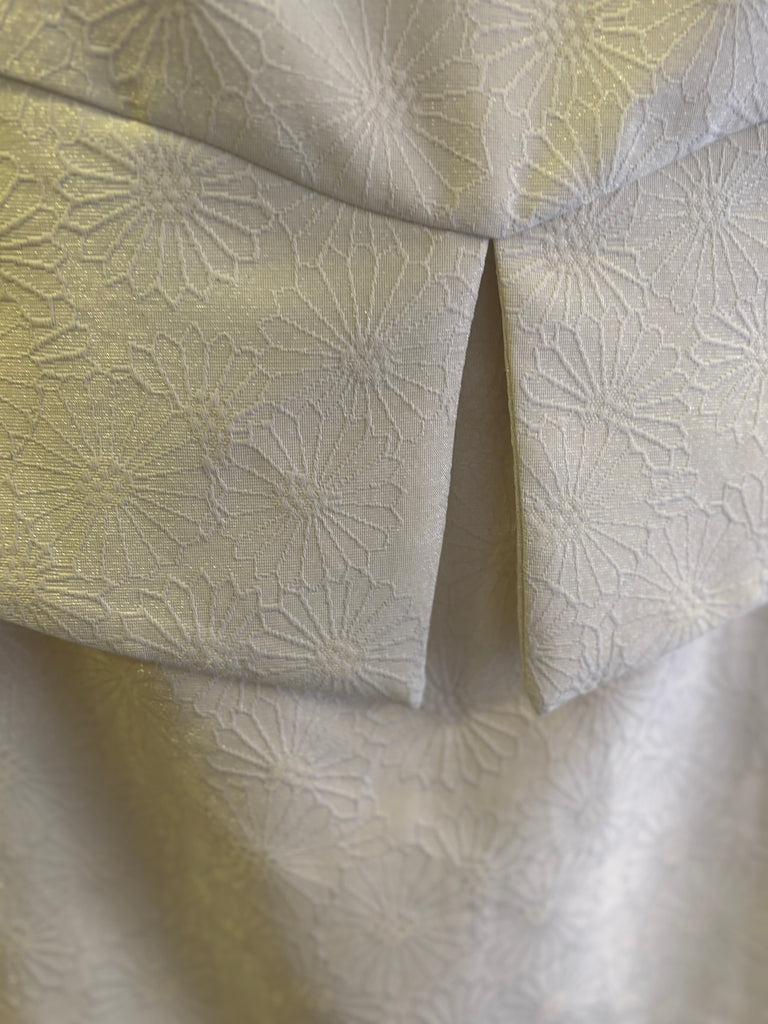 Color: blanco roto, con un precioso bordado de flores con hilo de lúrex.
