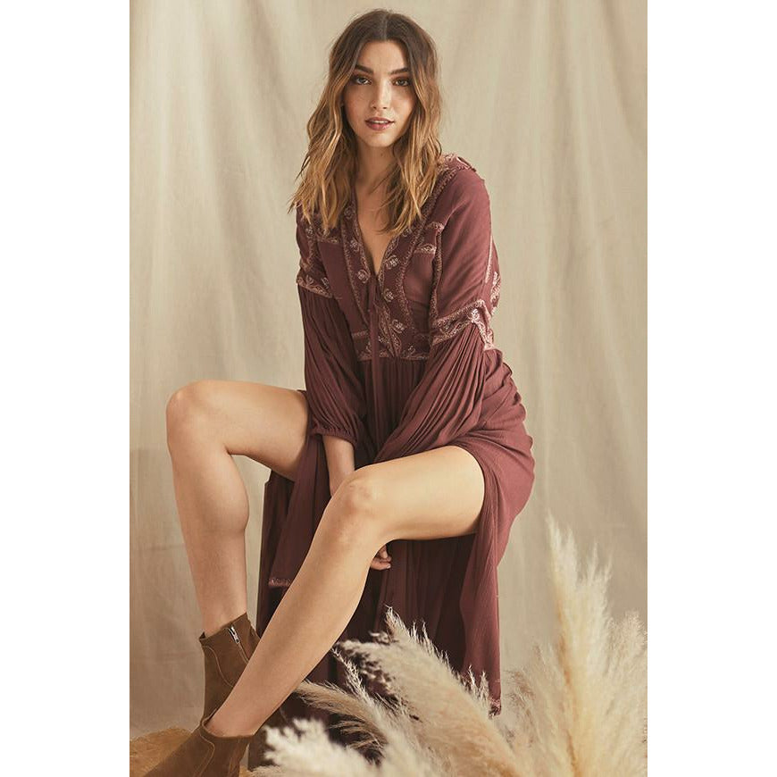 VESTIDO LARGO BORDADO ÉTNICO